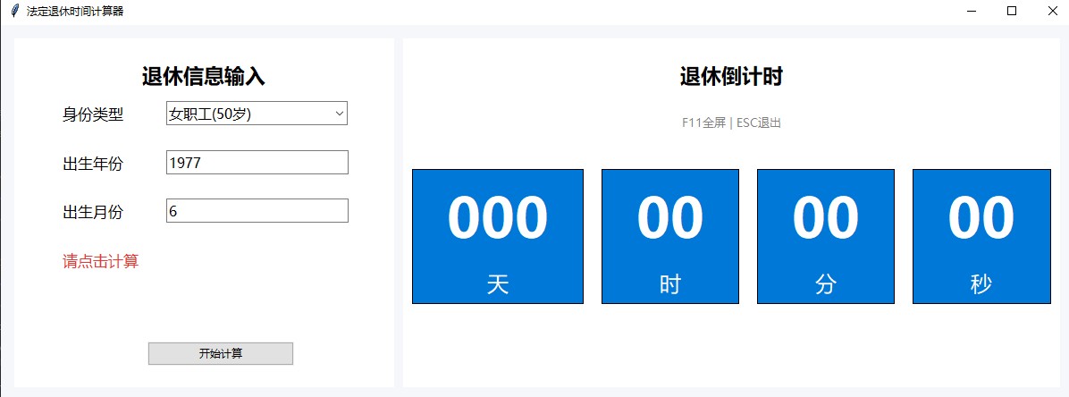 以上就是Python结合Tkinter实现法定退休时间计算器的详细内容,更多关于Python退休时间计算器的资料请关注脚本之家其它相关文章!