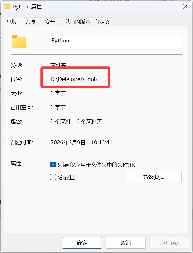 准备一个空文件夹,要求目录不能包含中文和空格,用于存放关于编程的工具,并在里面建立Python空文件夹,可以右键文件夹查看目录是否包含中文和空格。
