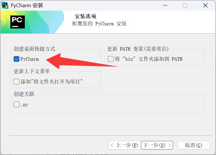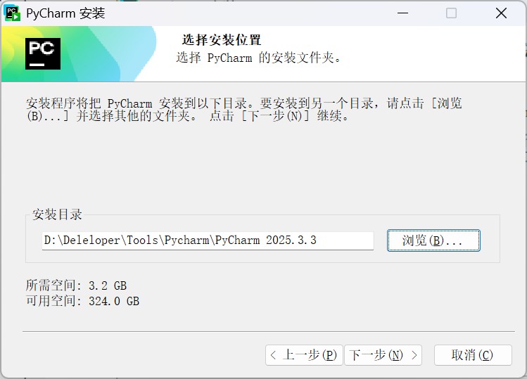 更改 PyCharm 的安装目录,点击下一步
