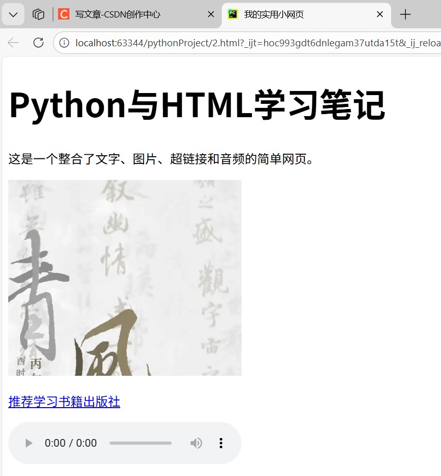 <p>这是一个整合了文字、图片、超链接和音频的简单网页。</p>