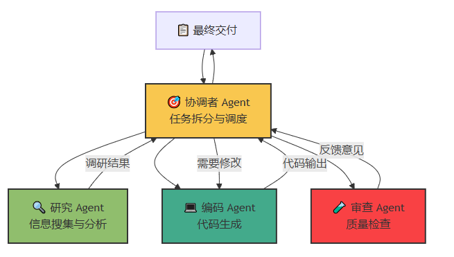 | Coordinator(协调者) | 分析需求、分配任务、汇总结果 | 任务拆解、结果整合 |