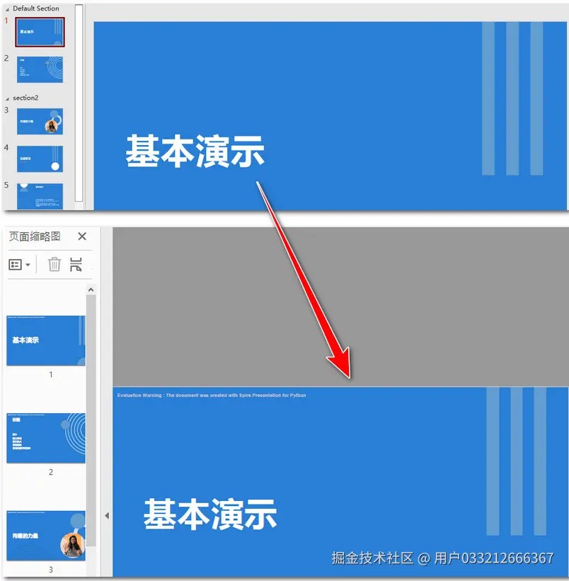 需要注意的是,幻灯片索引是从 0 开始的,因此 Slides[1] 实际上指的是第二张幻灯片。这种选择性转换功能非常适合创建精简版的演示摘要或针对特定受众定制内容。