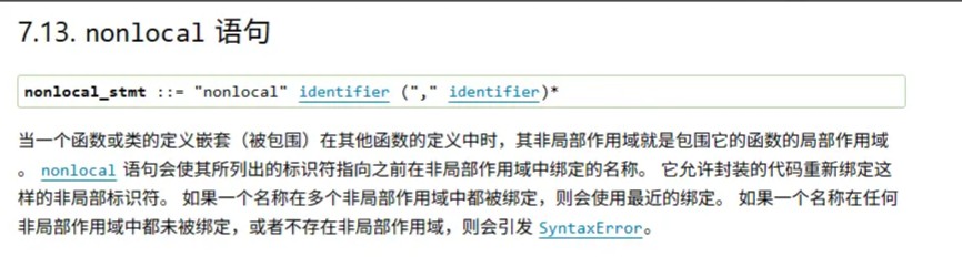 上面这两幅官网文档截图已经完全告诉我们了global和nonlocal的作用域规则: