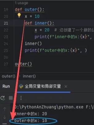 inner函数并没能修改outer函数的变量x。那怎么能把它改了呢?这时候就需要nonlocal:
