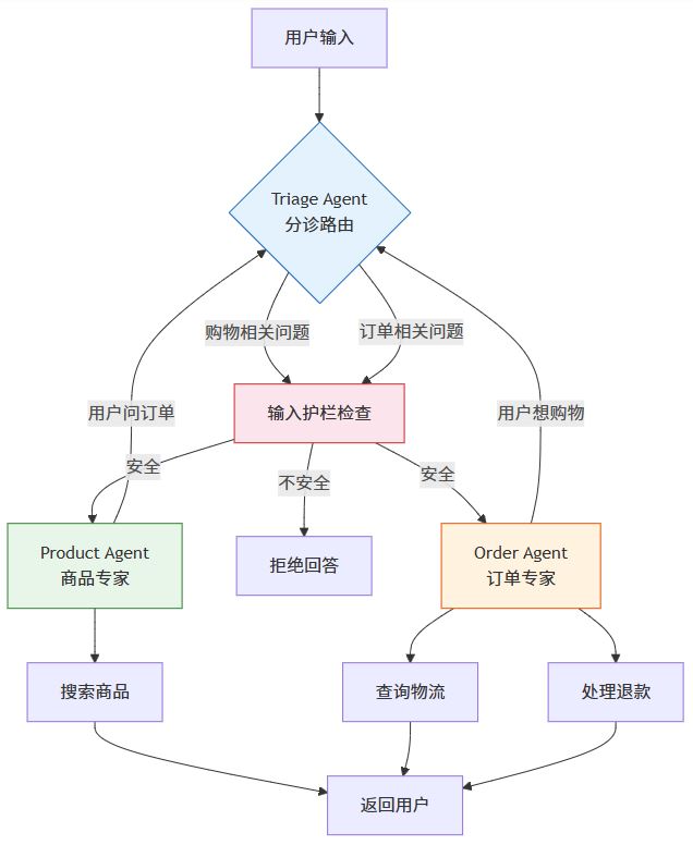 本文将带你从零开始,用Agents SDK构建一个完整的智能购物助手——包含路由分诊、专家协作、安全护栏、运行追踪等完整功能。