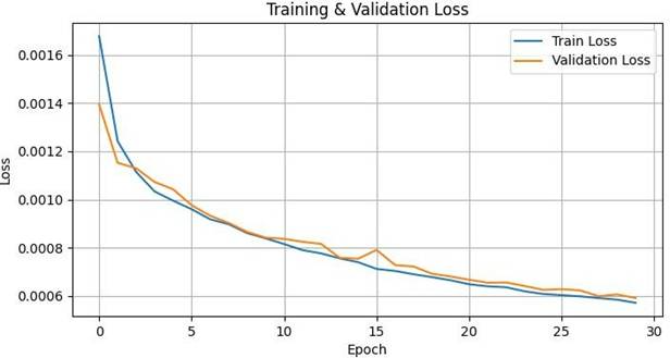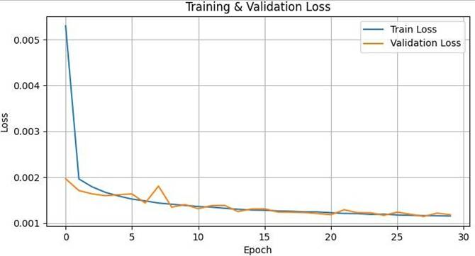 图12 DGCRN训练过程损失下降图(训练集与验证集损失曲线,约30个epoch后趋于收敛)