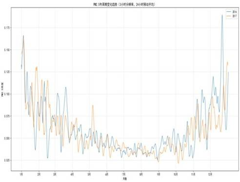 - 周周期:呈现出“周中稳态、周末抬升”的规律,周末波幅加大(标准差比工作日增加约12%)。可能的解释是周末部分工厂停工导致背景浓度变化,或居民出行模式的改变影响了二次转化条件。