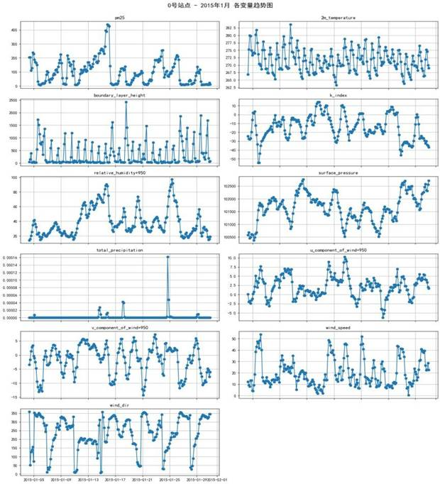 - 突变变量插值:PM2.5、风速等易突变的变量采用分段线性插值,仅填补短时缺口(连续缺失不超过3个时间点),长时段缺失则不强行插补,以尽量保留突发波动特征。