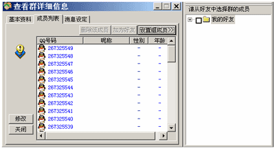 3) 在成员列表中点“设置组成员”,就可以在好友中选择群的成员添加了。