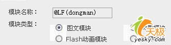 第二步:点击“自定义”按钮,点击“新建模块”,在“模块名称”内添入“@LF(dongman)”(添加时不要外面的双引号),这里的“@LF(dongman)”是作品的代码。如图一所示: