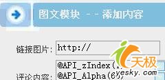第四步:当提交成功之后,在出现的“评论内容”里面再输入“@API_zIndex(1)”和“@API_Alpha(60)”(添加时不要外面的双引号),其中60是透明度,大家可以根据自己喜好选择。然后输入附加码,并点击“保存”按钮保存。 如图三所示: