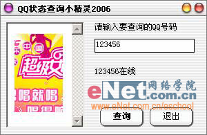 仿Mac风格的界面显的很清新。它的功能也相当简单,就是查询好友是否在线。试着输了一个朋友的号码,结果真的可以查到,实在是有趣!