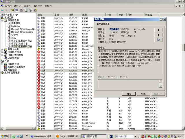 在WINDOWSXP 系统下,长时间(几个小时以上)使用QQ软件(或QQ游戏)时,会出现QQ没有响应,在WINDOWS任务管理器查看QQ进程CPU占有率为100%,并且在系统事件查看器应用程序日志中有如图报错,如何解决?