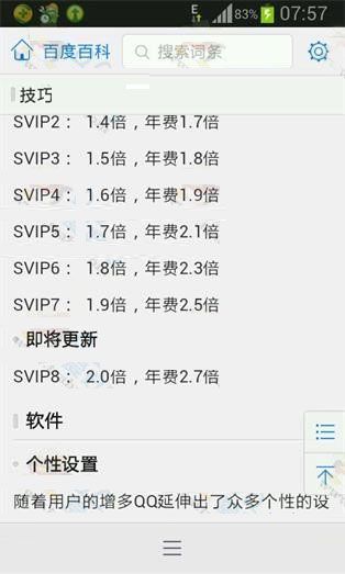 随着绿钻LV8的上线,很多人推测QQ会员VIP8也将推出了,今天收到小道消息:QQ会员VIP8确实要出来了,成长值已经确定是64800。年费超Q会员等级最高加速2.7倍,年费QQ会员最高加速2.2倍, 非年费超Q会员2.0倍。