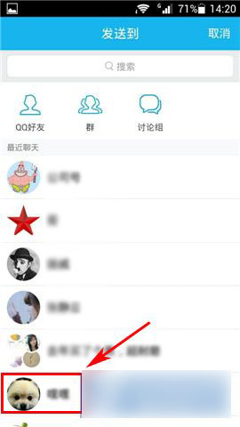 1)打开手机QQ,选择需要转发聊天记录的好友。(如下图)