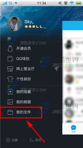 1)首先打开【手机QQ】,进入界面后点击左上角头像,再点击【我的文件】。(如下图)