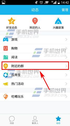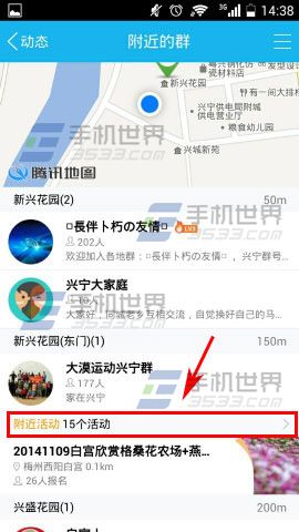 2)进去之后点击【附近的群】,然后点击【附近的活动】。(如下图)