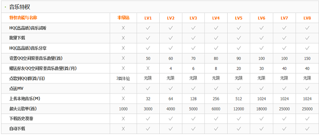 qq绿钻豪华版主要享有音乐特权(包括免费试听与下载HQ和SQ高品质和无损音乐),另外还有演唱会特权、游戏特权、身份特权四大VIP服务。