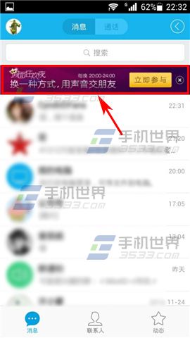 1)在晚上8点到12点之间,打开手机QQ,在【消息栏】最上方我们就可以看到【假面狂欢夜】的入口,点击即可进入。(如下图)