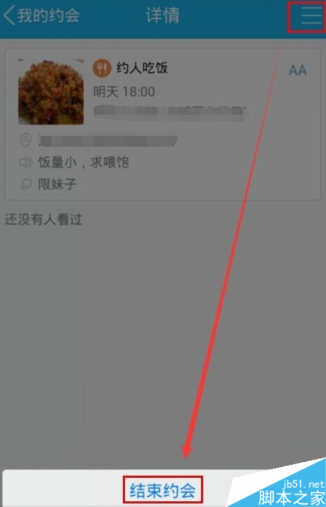 5、进入想要结束的约会,在右上角的菜单键中选择结束约会即可,效果图如下: