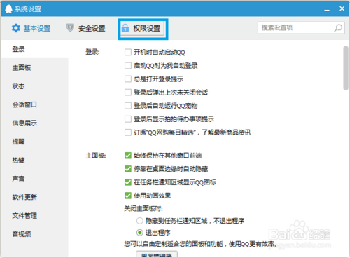 登陆后点击QQ主面板最下方的“系统设置”按钮,打开系统设置窗口;