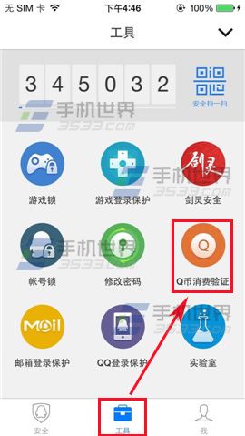 1)首先打开QQ安全中心,在【工具】界面点击【Q币开启消费验证】。(如下图0