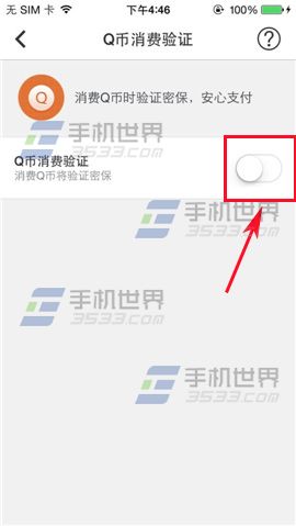 2)进入界面点击开启【Q币消费验证】即可开启。(如下图)