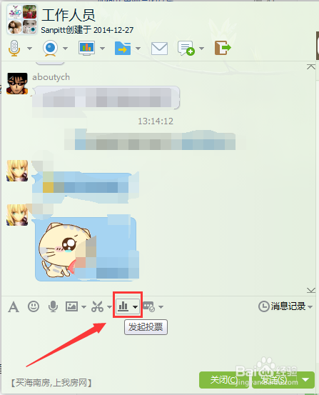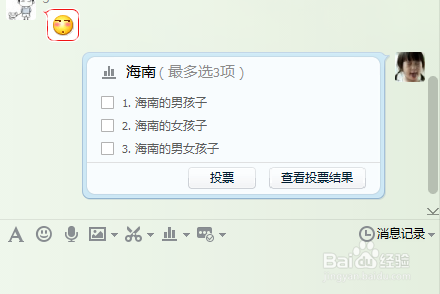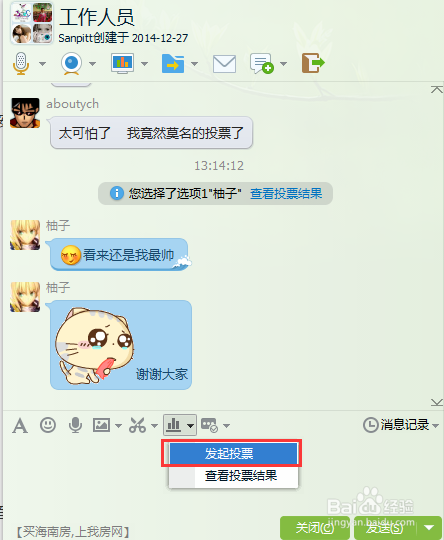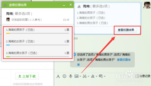 7、这时候窗口中就有你发起的投票信息了,所有的讨论组成员都可以发起投票。