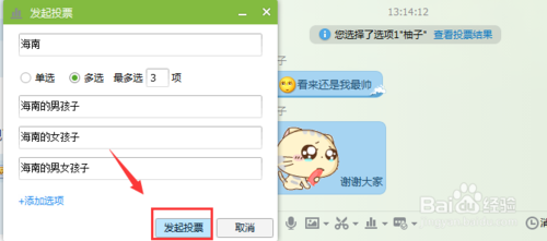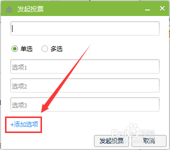 5、在弹出的窗口中,可以建立一个投票的名称,跟投票的数量或者名称。然后按下发起投票