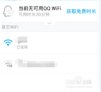 6、若是没有可用的QQwifi,可用点击该界面中的“获取免费时长”,根据其要求获得免费的QQwifi。