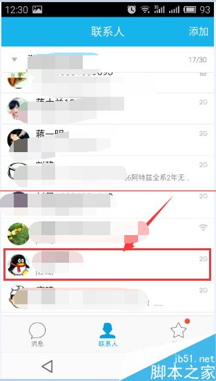 2、进入QQ之后,我们点击【联系人】,找到自己想要发红包的好友,如图示。