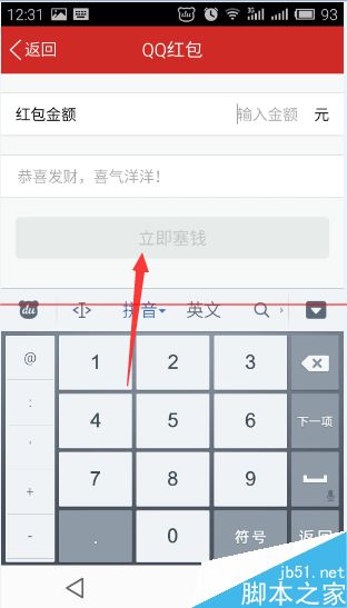 5、然后我们填写上红包的金额,还有一些祝福的话语,再带你几【立即塞钱】,如图示。