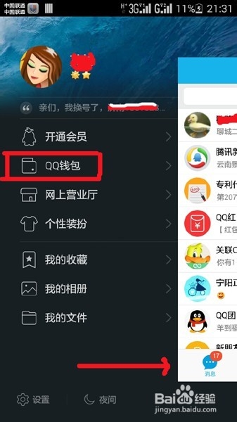 登录新版QQ后,向右拖动页面,在左侧的菜单栏内找到“QQ钱包”,点击打开。