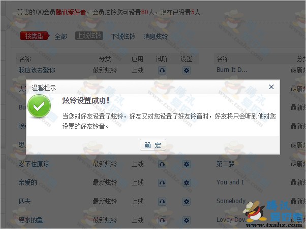 重新登录QQ客户端后,QQ会员个性铃音“小喇叭”消失截图