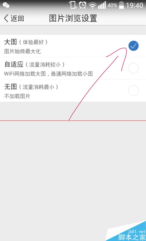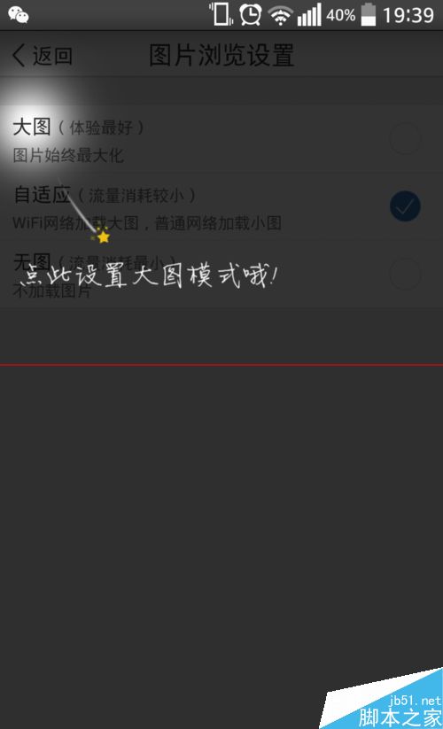 6、将以前设置的无图或自适应模式改为大图模式。以后在浏览动态等信息中的图片将以最大化显示。