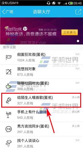 3)选择一位【话题】,点击进去畅聊吧,还分一对一畅聊和多人畅聊哦。(如下图)