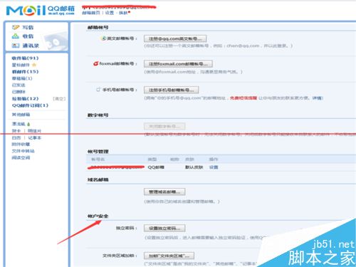 8、你会发现账户安全一栏出,右边已经没有“撤销QQ独立密码”的蓝色字体,恭喜你,你已经成功插销QQ邮箱的独立密码