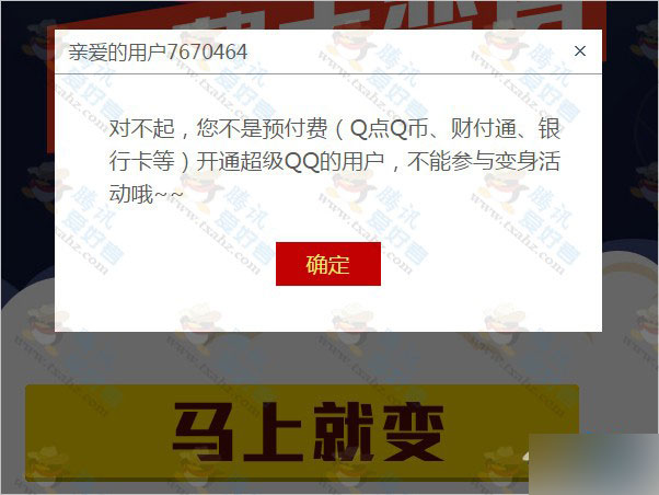 2、再点“马上就变”即可看到确定变身的提示了,当然前提是你满足变身的条件才可以。