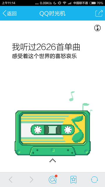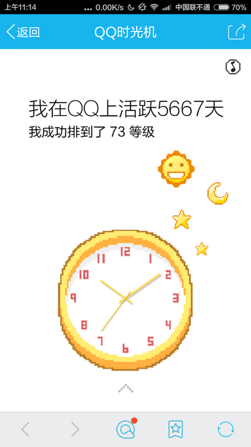 时光机中会提及到自己第一次玩QQ时间、听了多少首哥、发布日志篇数及照片张数,很有意思。想要查看自己的专属时光机,手机点击链接查看即可!