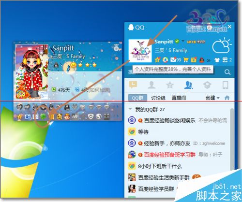1、进入朋友网的方式也改变了,以前是在QQ面板上面,现在只能点击QQ头像弹出的面签中的小图标点击进入了。