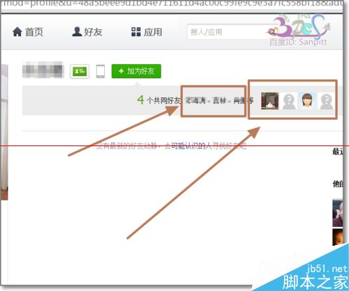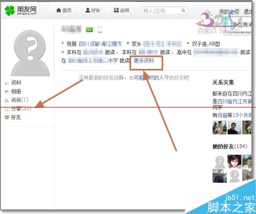 7、如图,可以查到这个共同好友的在朋友网的基本信息,如相册、分享等,但前提是此好友公开了访问权限。