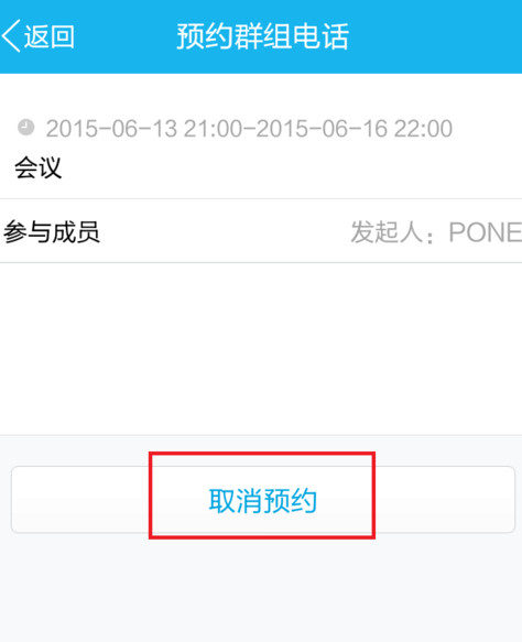 如果我们想取消群组电话预约的话,可以直接点击QQ弹出的预约成功的消息,然后便可以直接跳转进入预约页面,在该页面中我们选择“取消预约”选项。