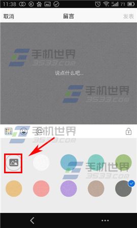 2)进入留言编辑,点击下方背景【图片】,在自己的相册中选取作为背景的图片,点击【确定】。(如下图)