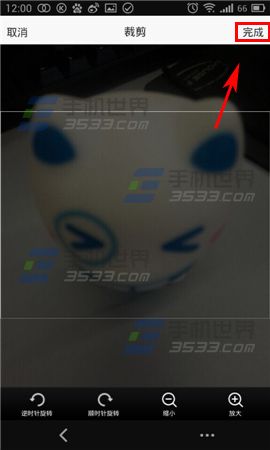 3)调整好照片大小,点击右上角【完成】。在留言编辑中输入要说的话语。完成最后点击【发表】。(如下图)