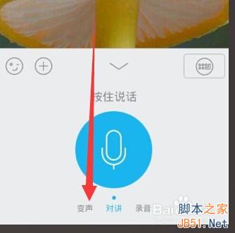 4、点击话筒的标志之后,下面有三个选项分别是“变声”“对讲”“录音”,可以通过滑动这些标志来切换这些功能,在这三个功能中选择“变声”。