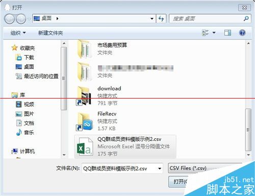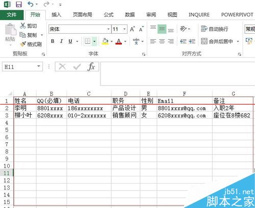 5、将下载的文件“QQ群成员资料模版示例.csv”打开,并按格式输入成员信息,如图: