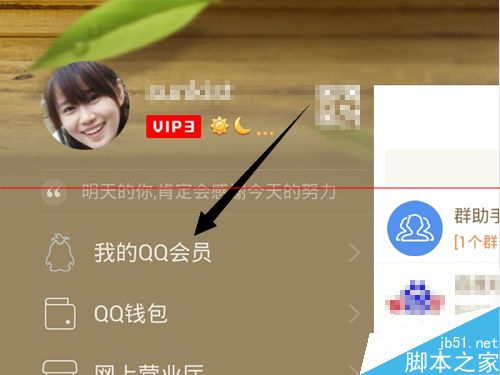 2、点击第一项,如果你是QQ会员这里会显示【我的QQ会员】,如果你只是普通QQ用户则显示为【开通QQ会员】。