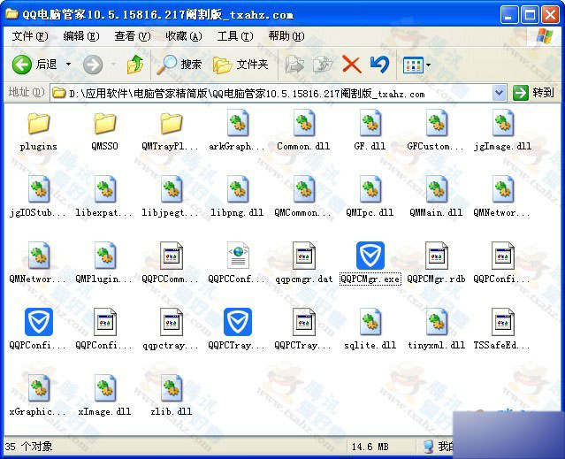 3、然后开始精简QQ电脑管家不必要的内容,总目录需要保留的文件(其他都删除)。如下图: