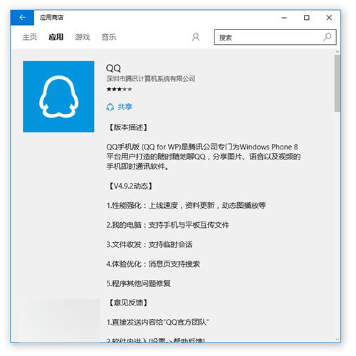 Windows10应用商店的幻灯片中,已经出现QQ Windows10版宣传字样,不过当你点击进去后,实际上还是Windows8、Windows 8.1版本,还不是真正的Win10通用应用版。