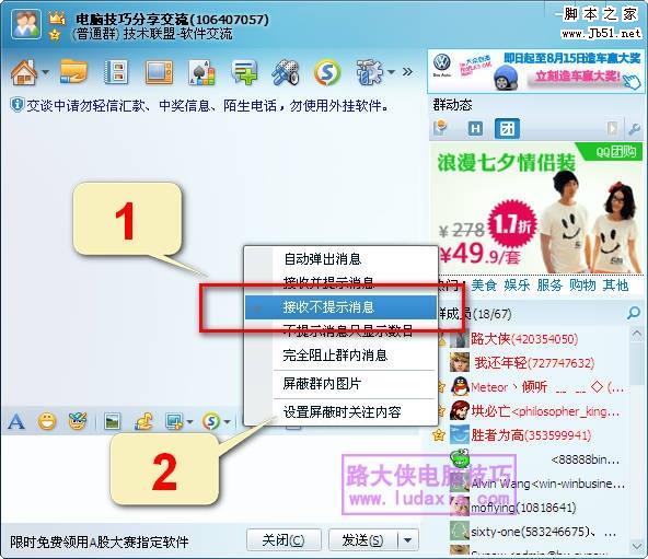 首先,打开一个QQ群,将提示消息设置为“接收不提示”消息;